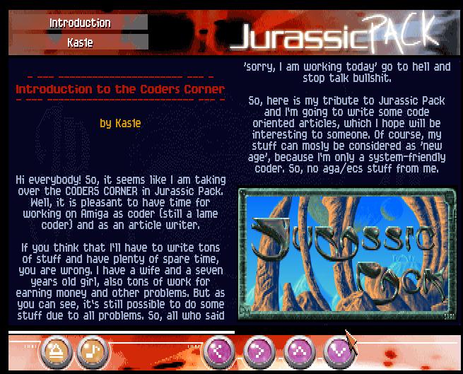 So, here is my tribute to Jurassic Pack and I am going to write some code oriented articles, which I hope will be interesting to someone. Of course, my stuff can mosly be considered as ’new age‘, because I`m only a system-friendly coder. So, no aga/ecs stuff from me.