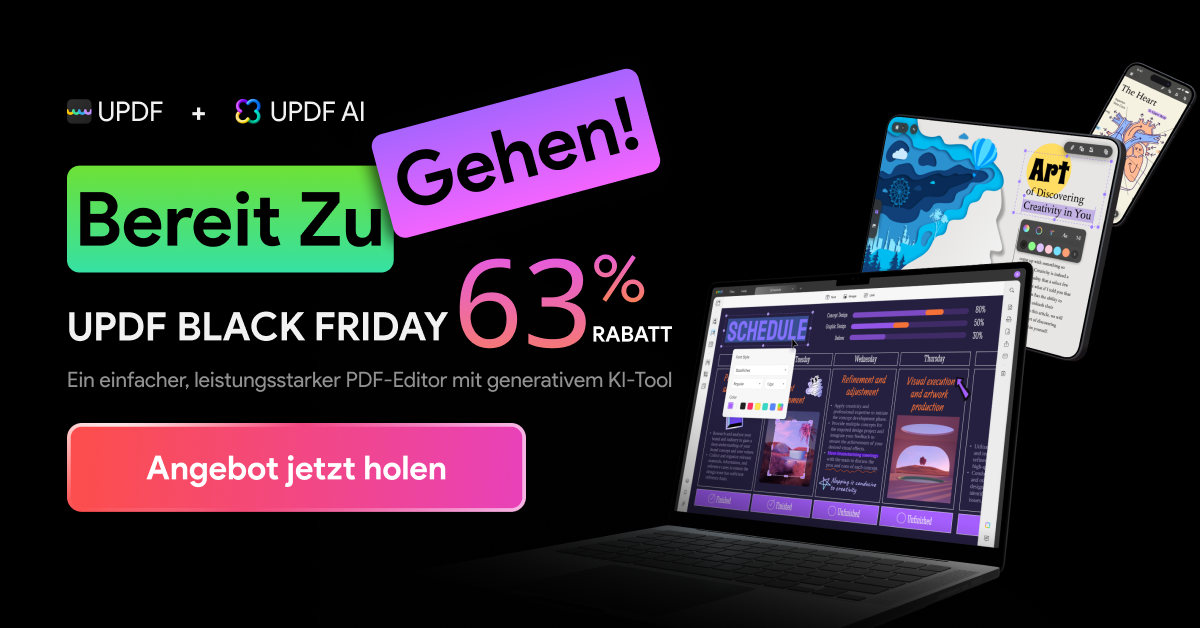 Wie Sie sehen, is UPDF der Superheld, auf den Sie gewartet haben! Dieses PDF-Tool bietet alles und noch viel mehr als Adobe und das ohne den hohen Preis! Es ist eine Lösung aus einer Hand für alle PDF-Anforderungen. Und mit der Integration von intelligenter KI wird selbst der Umgang mit komplexen Dateien zu einem mühelosen Unterfangen. Fassen Sie PDFs zusammen und arbeiten Sie problemlos mit Kunden auf der ganzen Welt zusammen. Sagen Sie Hallo zur leistungsstarken und taschenfreundlichen PDF-Bearbeitung mit einem brillanten Rabatt von 63% auf UPDF mit AI Add-on! Laden Sie UPDF gleich herunter – Sie werden es nicht bereuen!