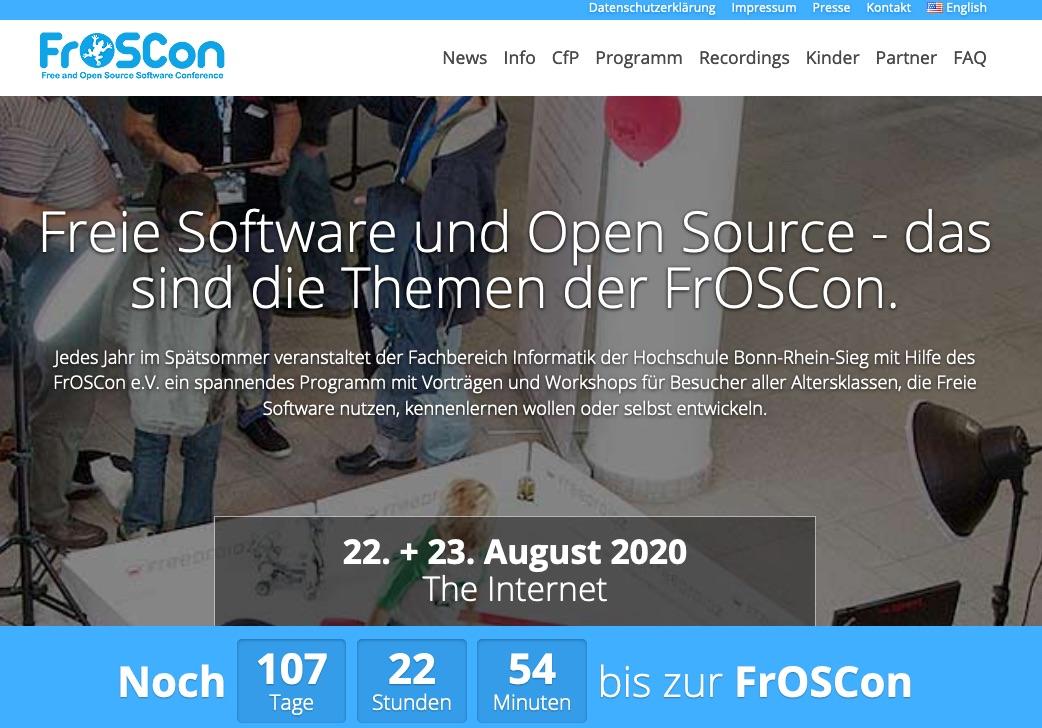 Die Free and Open Source Software Conference (FrOSCon) wird dieses Jahr rein virtuell stattfinden. Bis zum 23.5. läuft der Call for Papers.
