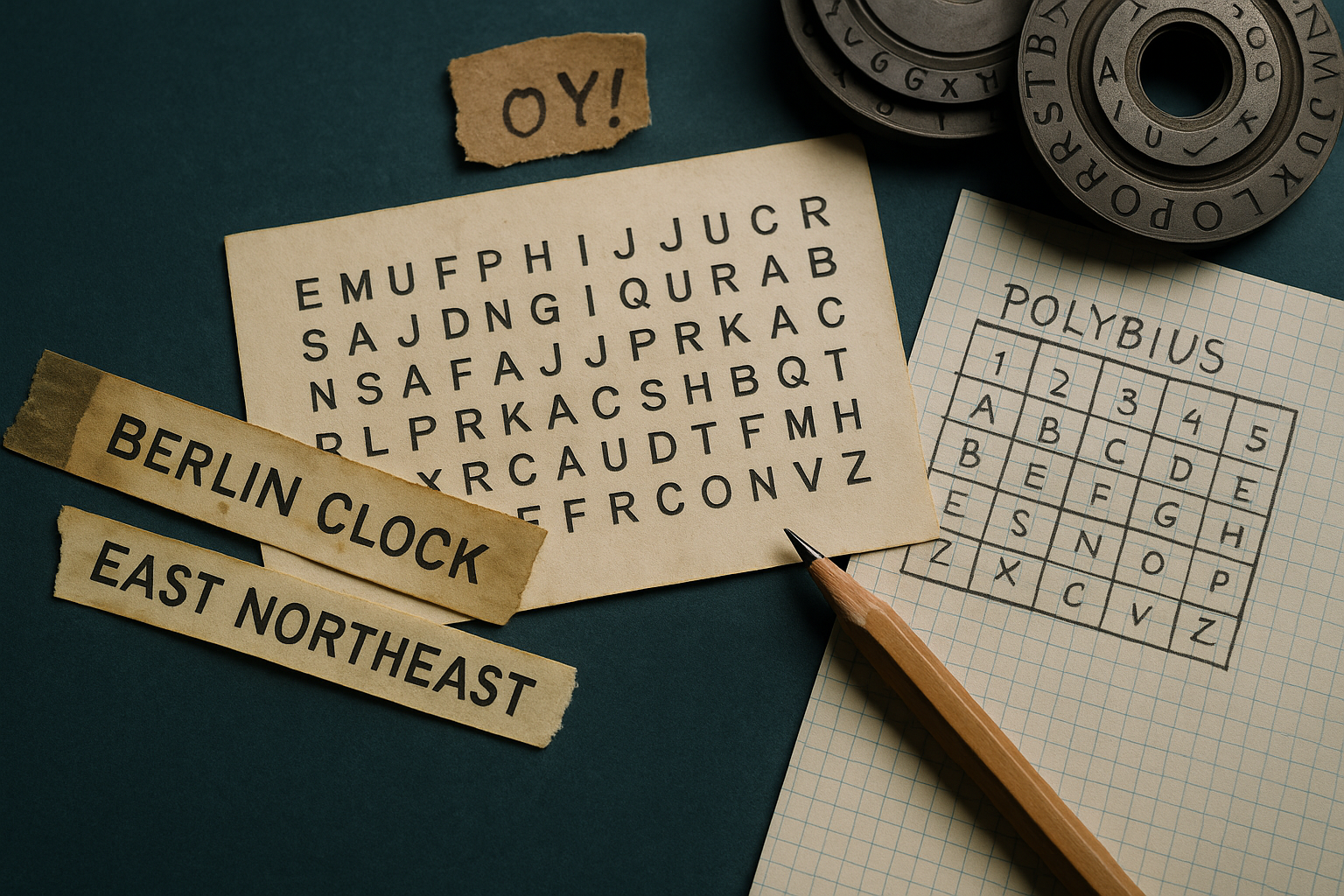 K3 geht einen anderen Weg. Hier verwendete Sanborn eine Transpositionschiffre, bei der die Buchstaben nicht ersetzt, sondern wie bei einem Anagramm neu angeordnet werden. Der entscheidende Hinweis ist ein Passwort, das die notwendige Reihenfolge bzw. die „Drehungen“ entschlüsselt, mit denen der Text neu sortiert werden muss. Solche Transpositionsverfahren waren jahrzehntelang fester Bestandteil militärischer Kommunikation, sowohl im Zweiten Weltkrieg als auch später im Kalten Krieg.