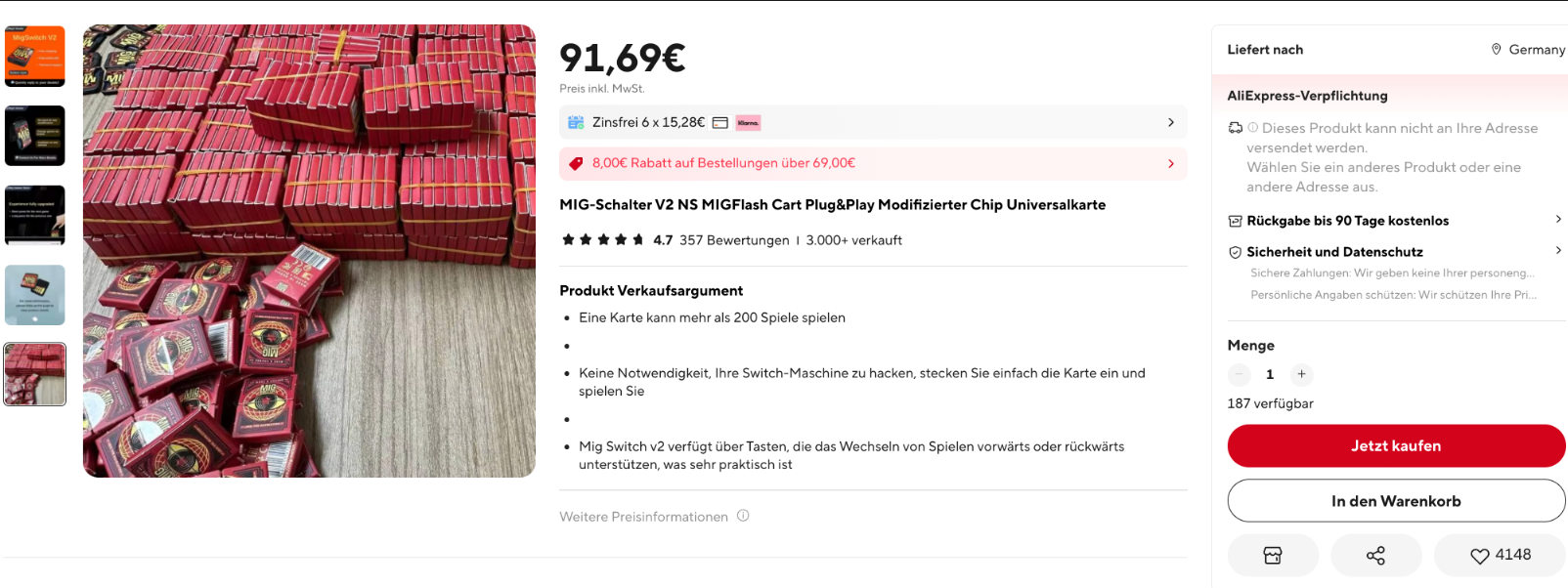 Das war’s für die Parismoi GmbH, zumindest was den Vertrieb von illegalen Flashcarts betrifft. Da kann man keine MIG Switch V1 oder V2 mehr kaufen. Die Hardware ist auch unter dem Namen MIG Flash bekannt. Der Händler verdient sein Geld nun wieder mit dem Versand von Schuhen. Wer einen Beweis für das Aus sehen will, kann sich gerne den aktuellen Screenshot von heute früh anschauen.