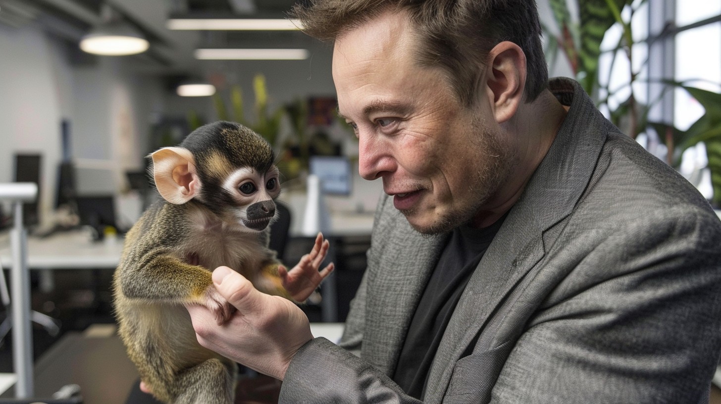 Der X-Chef Elon Musk spielt mit einem Affen