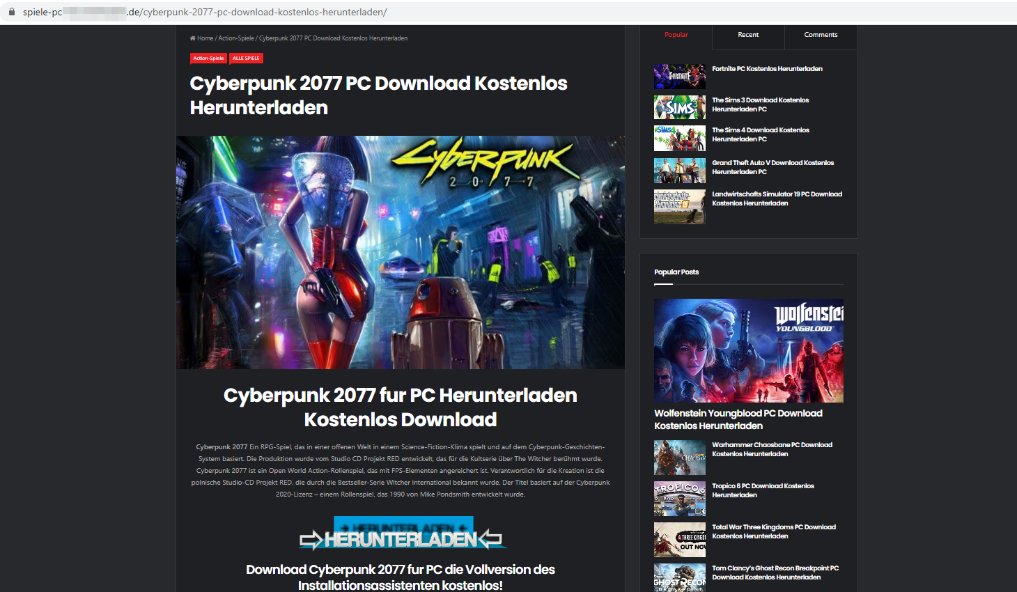 Diese Vorfreude auf das zu erwartende Spiel nutzen aktuell Betüger aus. Sicherheitsforscher von Kaspersky Lab informieren darüber, dass eine Reihe von Websites in verschiedenen Sprachen online gegangen sind. In den URLs enthalten sind solche Schlüsselwörter, wie „PC“, „Spiele“ und „Download“. Zudem werden darauf kostenlos angebliche Downloads von Cyberpunk 2077 angeboten.
