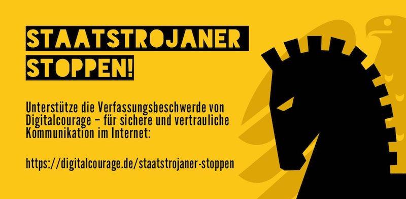 Auf ihrer Info- und Aktionsseite ruft Digitalcourage aktuell dazu auf, sie darin zu unterstützen, den Staatstrojaner zu stoppen.