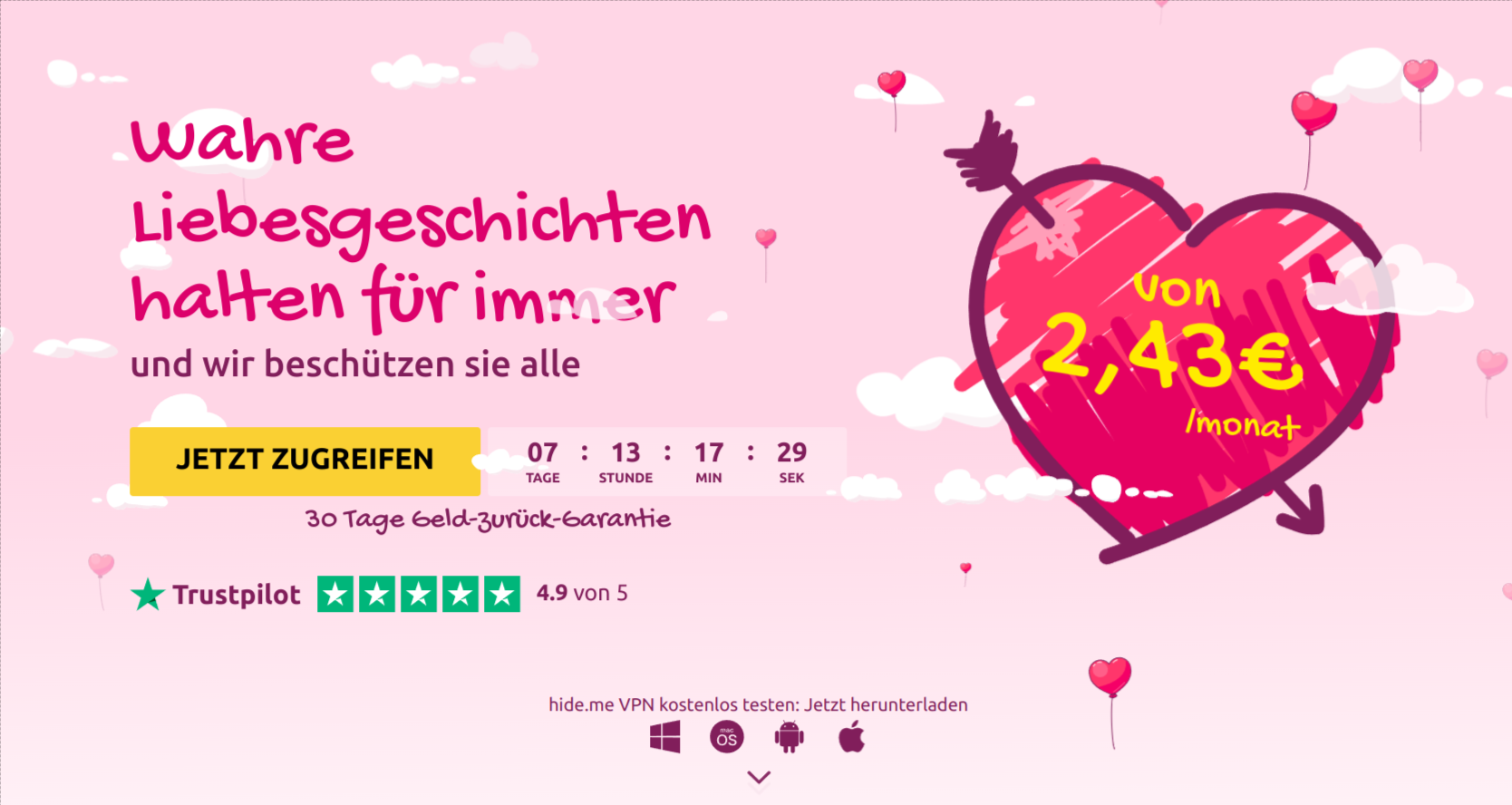 Das Angebot: hide.me für 2,43 € monatlich buchen!*