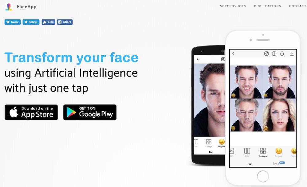Beitragsbild: Screenshot der Webseite von FaceApp