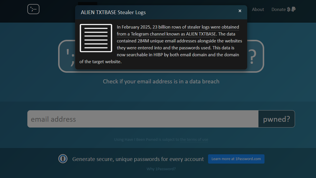Zeit für einen Besuch bei HIBP: Ein massives Leak aus E-Mail-Adressen und Passwörtern lädt zum Prüfen der eigenen Daten ein.