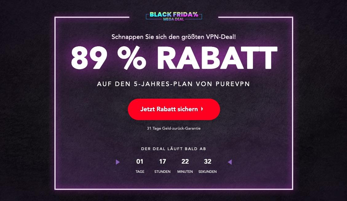 PureVPN bietet anlässlich des Black Friday den besten VPN-Deal des Jahres an! Spare und zahle pro Monat nur noch schlappe 1,03 Euro!