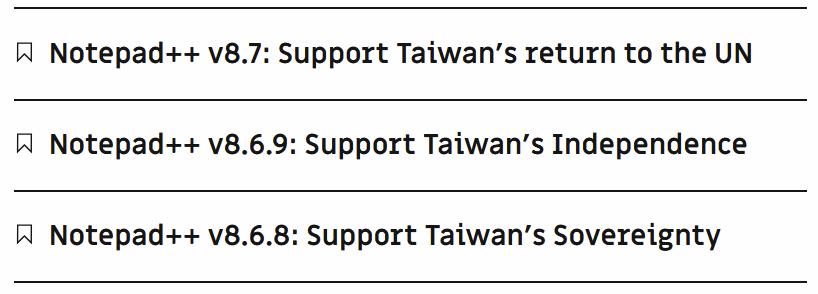 Ein politisches Motiv liegt auch dabei nahe. Der Entwickler Don Ho nutzt die Popularität seiner Software regelmäßig für politischen Aktivismus, der der chinesischen Führung ein Dorn im Auge sein dürfte. So trugen Versionen aus dem Jahr 2024 Titel wie „Support Taiwan’s Independence“ (v8.6.9) oder „Support Taiwan’s return to the UN“ (v8.7).