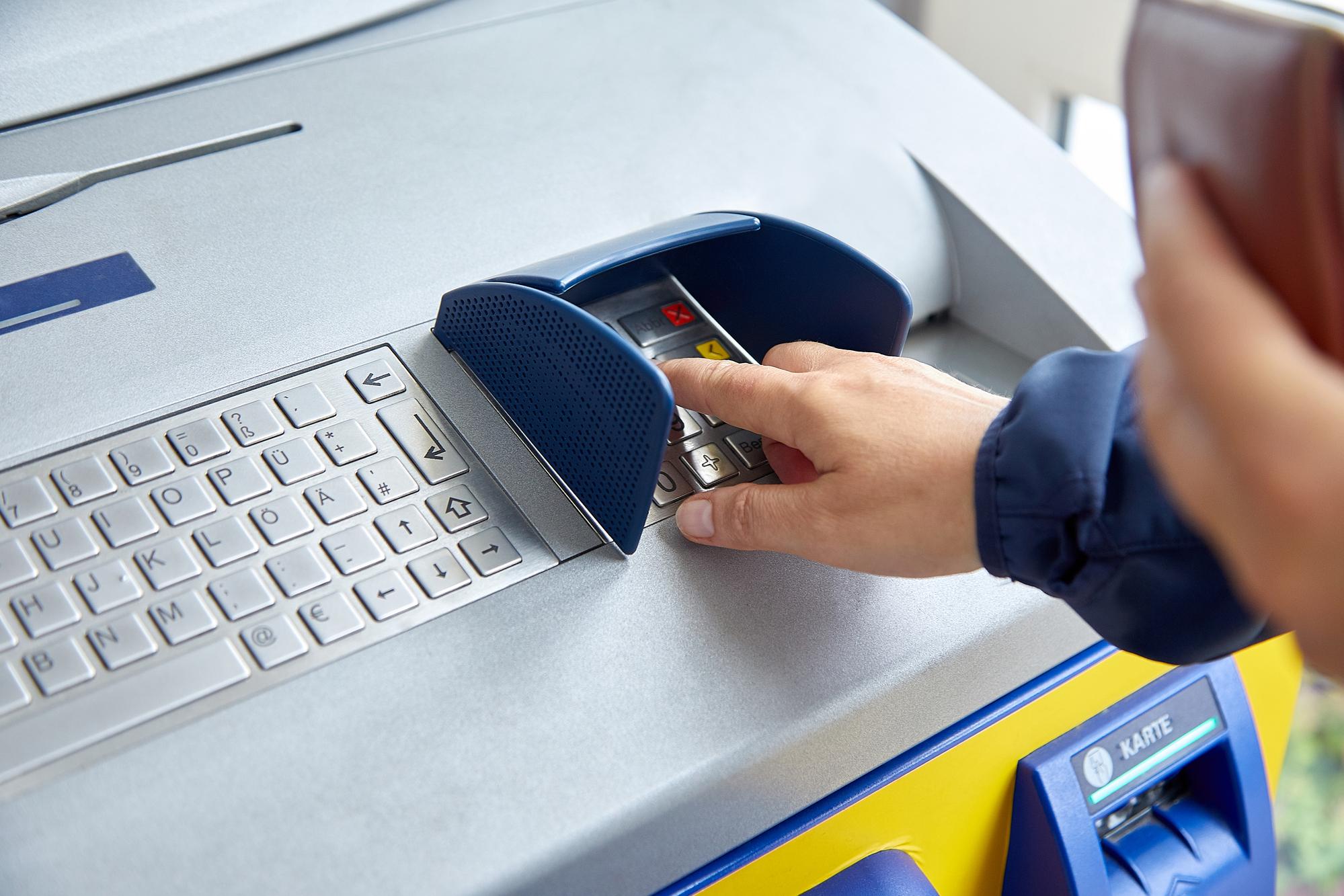 - Decken Sie immer eine Hand über das Eingabefeld, wenn Sie mit der anderen Hand ihre PIN eingeben.