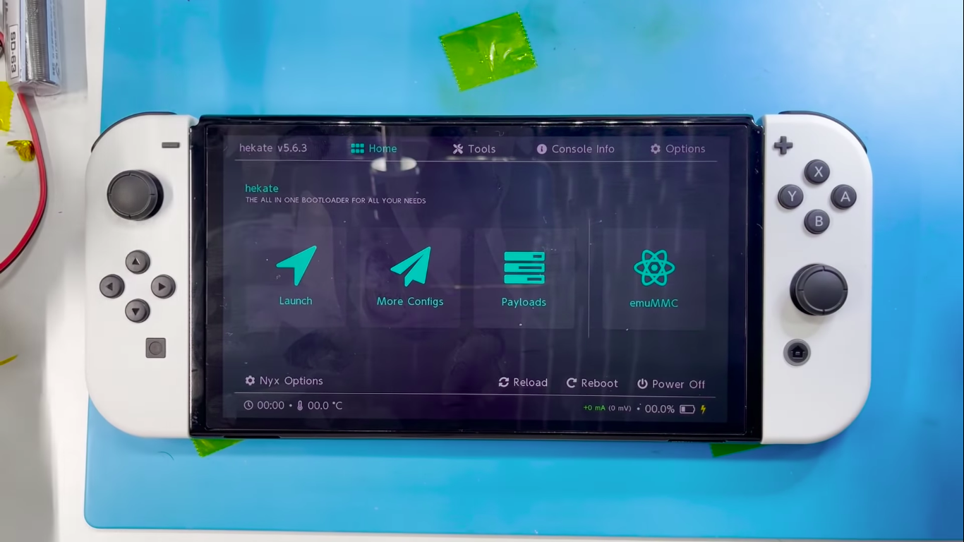 In einem späteren Video zeigt Yokan dann, wie er hekate, einen Bootloader für die Switch, auf der Konsole startet. Zwar gibt es Probleme mit dem Touchscreen, aber es ist damit auf jeden Fall bestätigt, dass der Modchip SX Core weiterhin funktioniert. Leider zeigt sein YouTube Video nur die geöffnete Rückseite der Switch OLED. Eine genauere Einbauanleitung liefert er nicht.