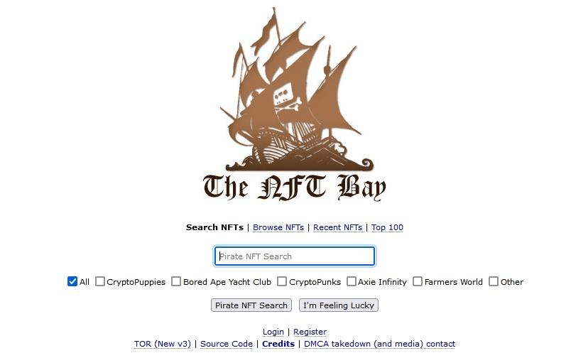 "The NFT Bay" bietet eine massive Menge an NFT-Bildern an. Das Design ist stark an "The Pirate Bay" angelehnt.