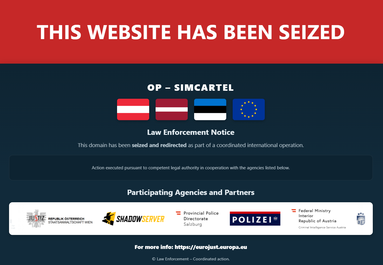Kürzlich hat Eurojust in Zusammenarbeit mit der Staatsanwaltschaft Wien, Europol und diversen anderen Behörden im Rahmen der Op Simcartel die Domain des Dienstes gogetsms.com beschlagnahmt. Ob es auch zu Durchsuchungen oder Verhaftungen kam, ist bisher nicht bekannt.