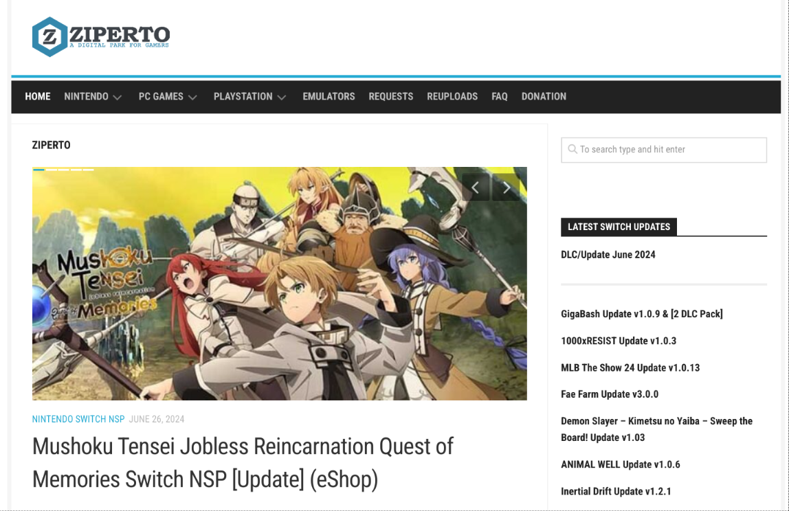 Die CUII-Sperre betrifft das populäre und nicht minder illegale Download-Portal Ziperto.com. Dort bietet man vor allem Nintendo-Warez an.