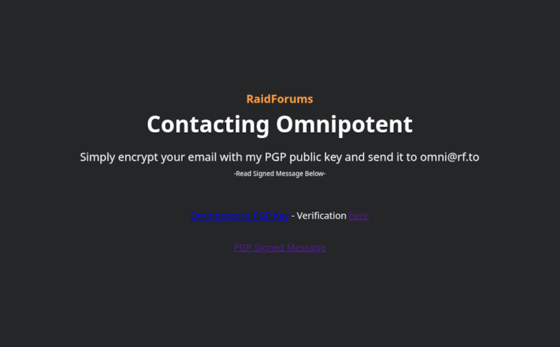 Omnipotent war Administrator und galt als mutmaßlicher Gründer von einem der größten Hackerforen im Netz. Nach seiner Verhaftung war er schnell wieder auf freiem Fuß. Nun versucht er ehemalige User von RaidForums dazu zu bringen, mit ihm zu reden.