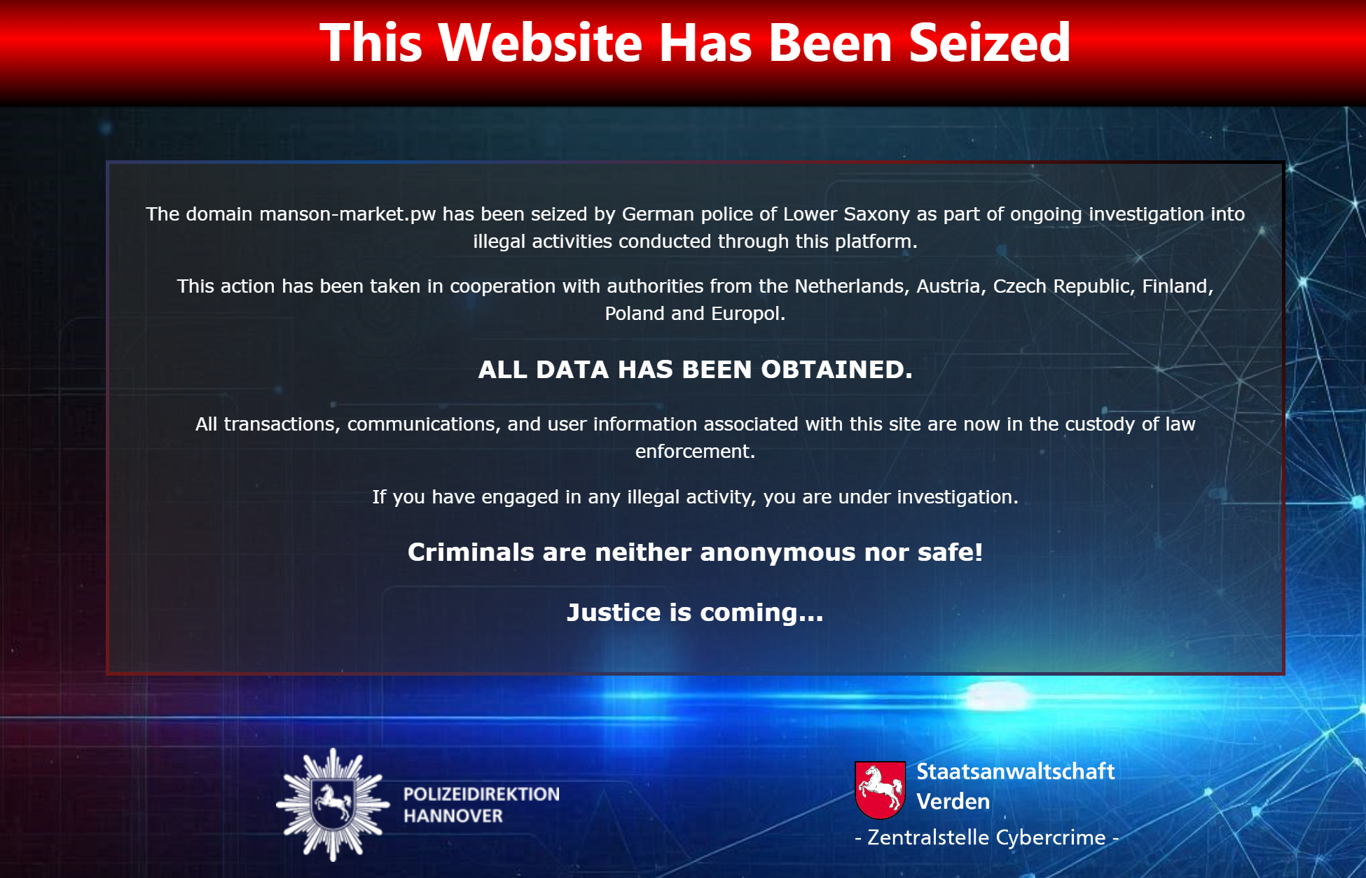 Phishing und Datenhandel bekämpft, Online-Marktplatz "Manson-Market" beschlagnahmt: Polizei schaltet über 50 Server ab und sichert Beweise.