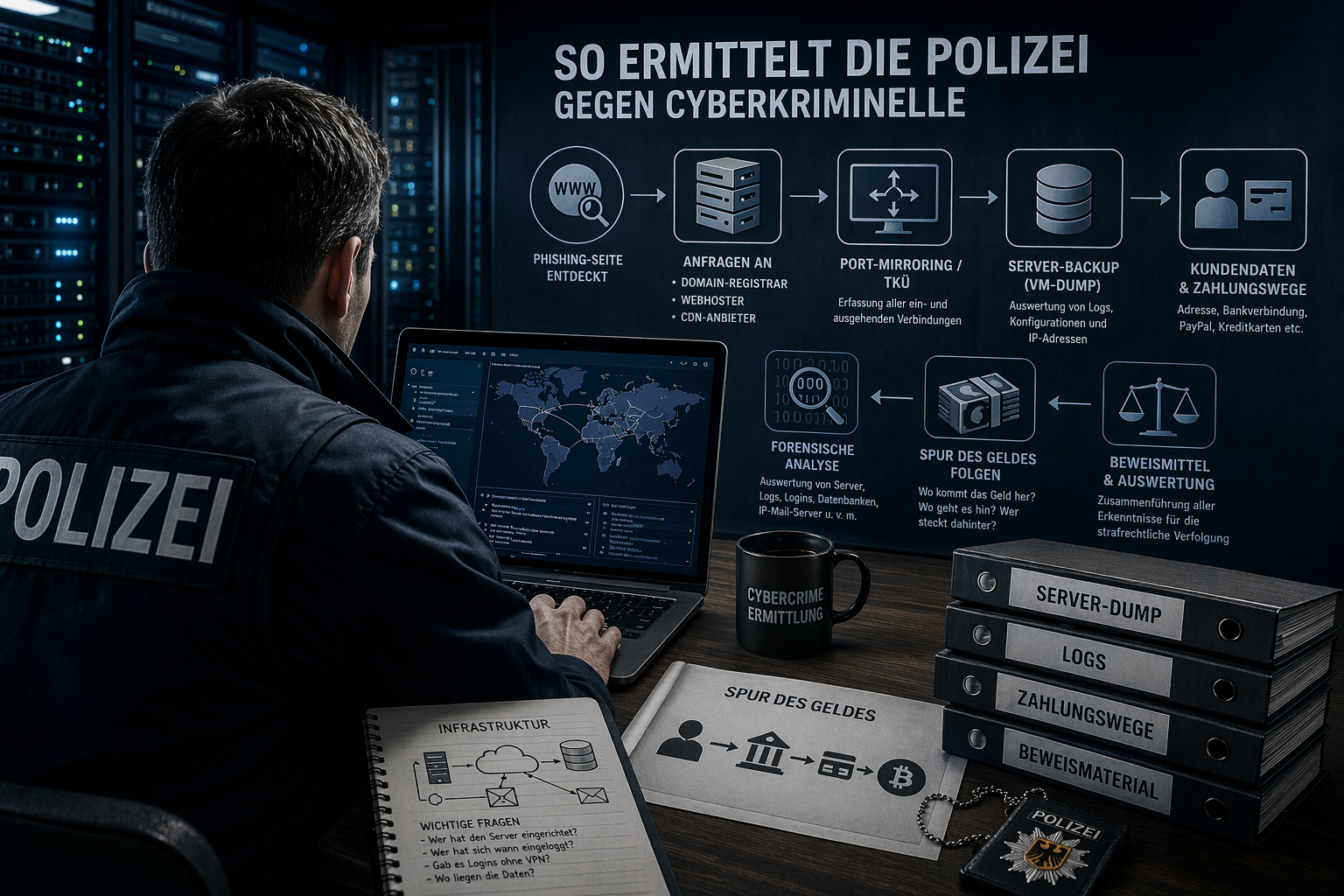 Wir stellen in diesem Hintergrundbericht die Ermittlungsmethoden der deutschen Behörden vor. Der vorliegende Fall rund um eine Phishing-Webseite zeigt exemplarisch, wie strukturiert und mehrstufig Strafverfolgungsbehörden inzwischen vorgehen. Ausgangspunkt der Ermittlungen ist häufig eine entdeckte Phishing-Seite, die entweder durch Hinweise von Geschädigten, Sicherheitsforschern oder automatisierte Scans der Kreditkartenanbieter etc. auffällt. Die Vorgehensweise ist aber die gleiche wie bei Warez-Seiten, Fake-Shops, Fraud-Foren etc.