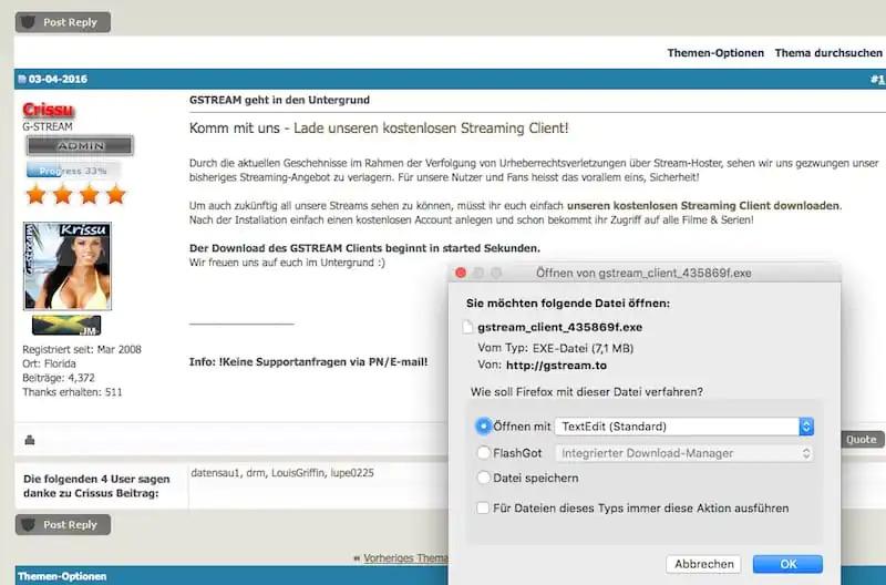 Gstream.to ist nach längerer Downtime mal wieder online. Allerdings wollen die neuen Betreiber alle Besucher mit einem sogenannten „Streaming Client“ abzocken. Wir haben die Software eingehend untersucht.