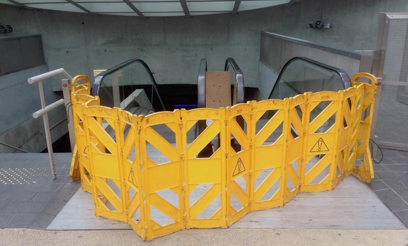 Beitragsbild: „Rolltreppe abwärts“ von Lars Sobiraj – September 2018. Versperrter Eingang einer Pariser Metro-Station.