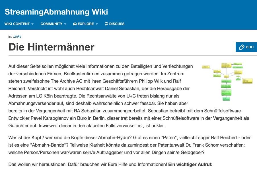 Ganz offensichtlich fehlt es bei diesem Projekt zum jetzigen Zeitpunkt noch an Unterstützung von Juristen und/oder Steuerfachleuten, die insbesondere über grenzüberschreitendes Fachwissen verfügen. Die Gretchenfrage dabei ist, ob die nicht stets nur im eigenen Interesse und zum eigenen Vorteil Recherchen anstellen und öffentliche Beurteilungen abgeben. Es wäre sehr schade, wenn diese Sammlung auf Dauer zu einem Platz von Annahmen und ungeprüften Behauptungen werden würde. Dafür muss ich kein Wiki starten, das kann ich in fast jedem Anti-Abmahnforum haben – wenn auch sehr viel unübersichtlicher.