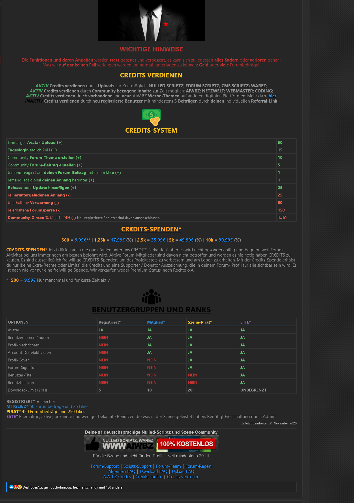 Natürlich um fair zu bleiben, gibt es als Leckerli bei jeder täglichen Anmeldung einige Credits und beim Schreiben neuer Themen sowie beim einstellen von Downloads ebenfalls einige Credits die jedoch kaum ausreichend sind etwas Anständiges runterzuladen. Bleibt letztlich nur der Kauf von Credits, der Betreiber steckt die Kohle natürlich fein in seinen Sack.
