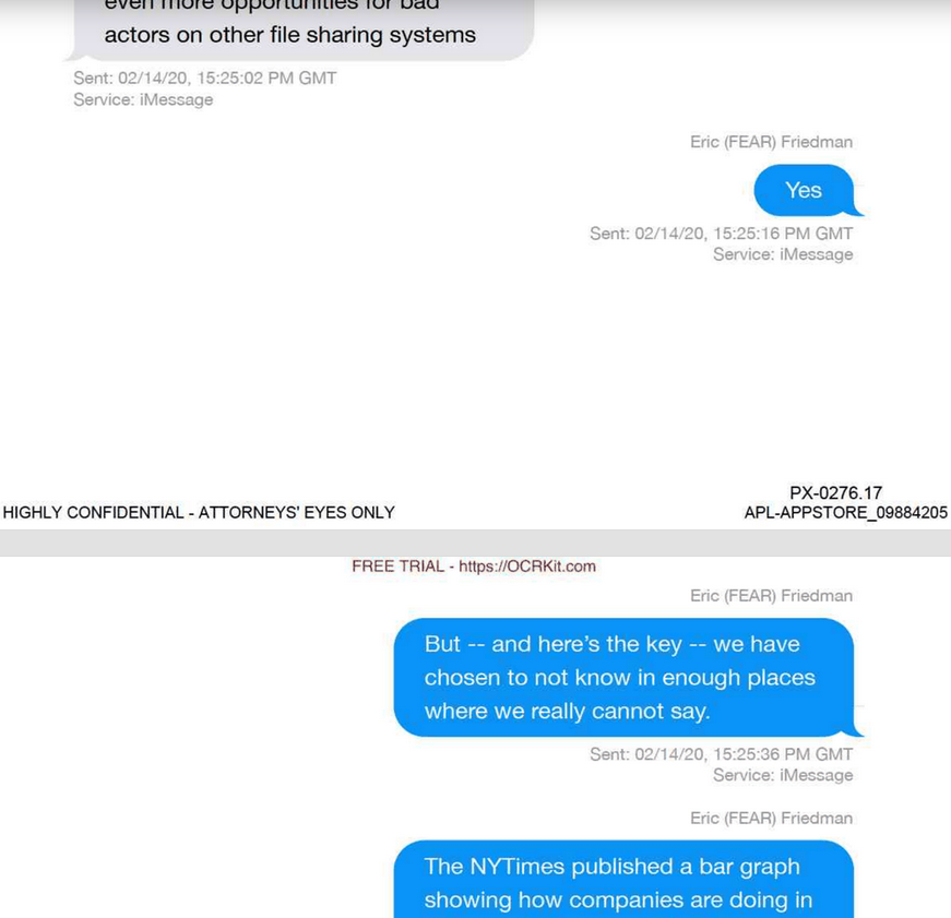 Die komplette Unterhaltung zwischen den beiden kann man sich hier anschauen: https://embed.documentcloud.org/documents/21044004-2020-february-fear-friedman-admits-in-feb-2020-that-app-store-greatest-platform-for-child-porn-predator-grooming/#document/p17
