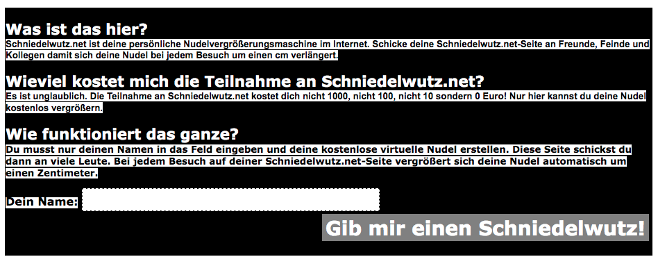 Hat er tatsächlich einige „Websites“ ent- tarnt…, die wohl euren Verein gehören. Also schniedelwutz.net - natürlich die Wayback Machine findet da noch was…
