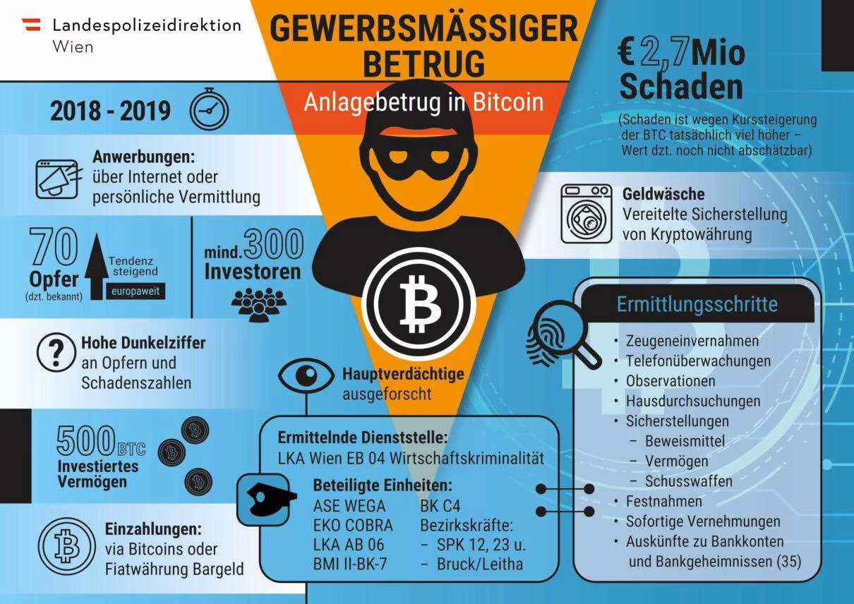 Zwei mutmaßliche Bitcoin-Betrüger müssen sich vor dem Wiener Straflandesgericht verantworten. Der verursachte Schaden soll 2,7 Millionen Euro betragen.
