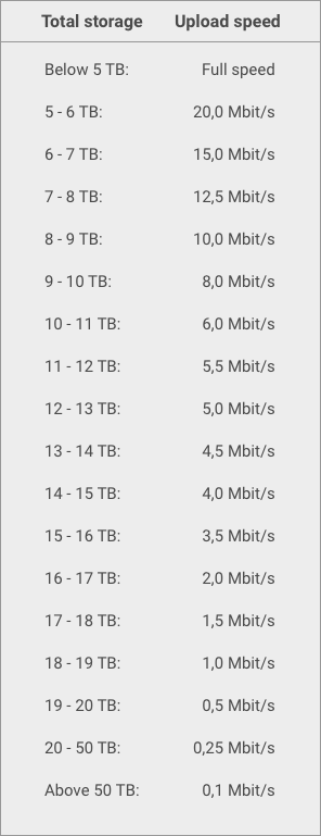 Wow, das ist echt günstig! Ich kann mir das fast nicht vorstellen… Habe noch nie ein Angebot gesehen, bei welchem man unbegrenzten Speicherplatz bekommt (selbst wenn es dann ab 5TB künstlich verlangsamt wird).