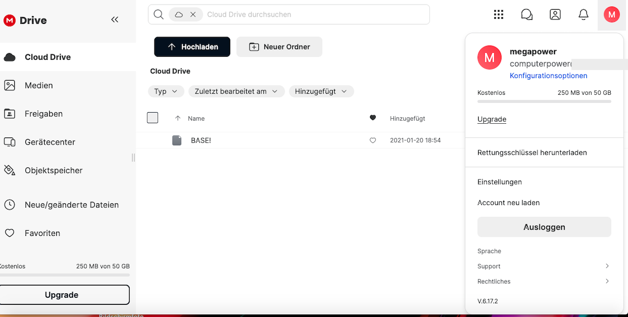 Einloggen hat geklappt, allerdings werden hier nur noch 4 GB kostenloser