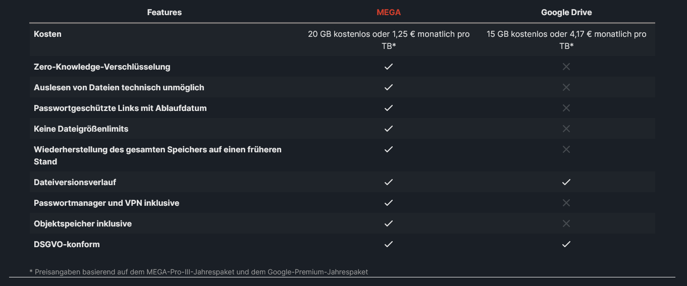 Um auch mal Zahlen zum Pro-Plan (gibt mehrere) bei MEGA reinzustellen: