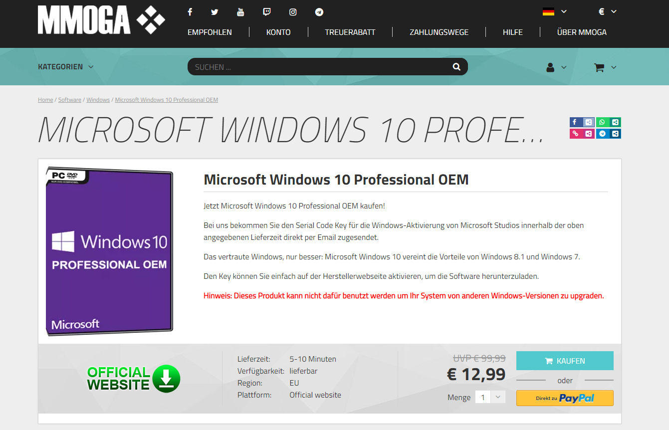 Kommentare zu folgendem Beitrag: eBay Kleinanzeigen bietet weiter geklaute Windows-Lizenzen an