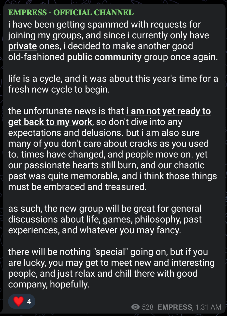 Die ursprüngliche Skidrow Crew gibts nicht mehr. Du sprichst hier von anderen Mitgliedern, die den Name mißbrauchen mit ihrer schlechten Arbeit. Skidrow ist schon lange in der Scene verpöhnt. Also im Grunde hatte Empress schon recht, aber Skidrow sind halt drauf eingegangen und haben den „Krieg“ dann eskaliert.
