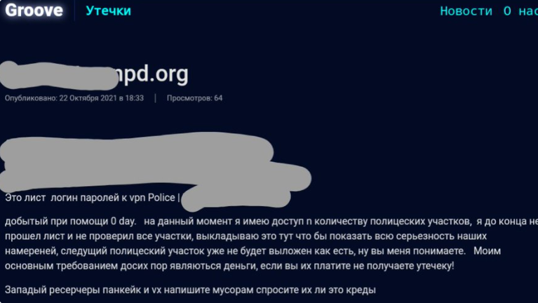 Groove gang has released VPN login credentials for a police network in the United States on their darkweb blog.