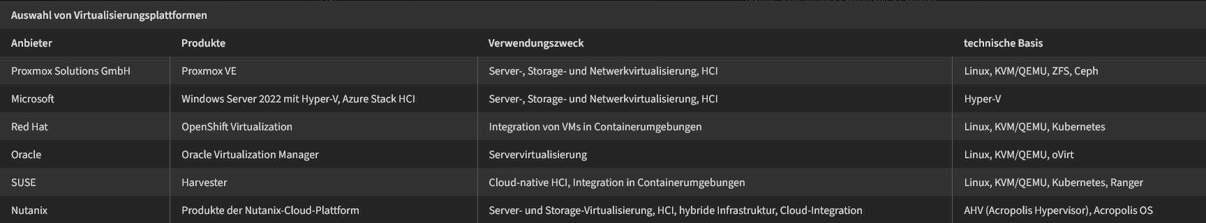 Es gibt dazu für die Hypervisor-Technik einige brauchbare Alternativen, die teilw. auch Open Source und / oder kompl. Free sind! Da eine einzelne Aufzählung hier einfach den Rahmen sprengen würde, werde ich hier nur eine Auswahl an gängigen Methoden einstellen: