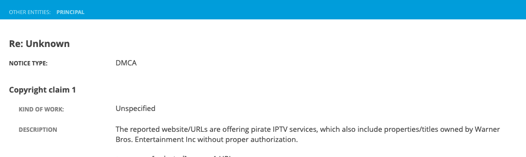Auch hier erkennt man schön, das vor allem „Warner Bros. USA“ hier sehr aktiv gegen diese Stream- Apps / Verteiler vorgeht. ( Einige habe ich geschwärzt).