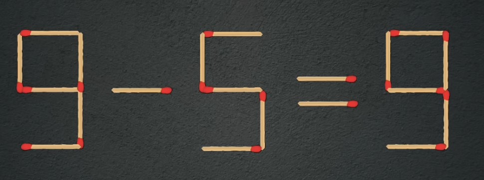 Man nimmt bei der 9 den linken senkrechten Streichholu und macht aus dem Minus ein Plus