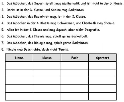 Alice Klasse 6, Fach Mathe, Sport Squash