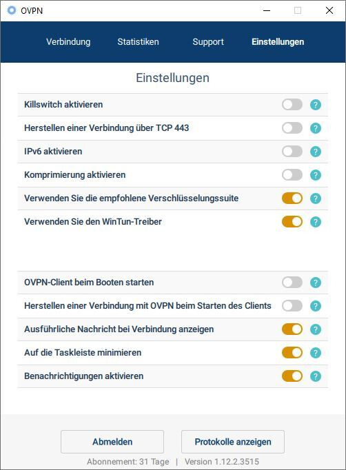 Die App baut die Verbindung zur gewählten Serverlocation schnell auf, schneller macht das bei mir nur noch Mullvad. Schön finde ich den Schnellzugriff auf die zuletzt genutzten Server, auch wenn ich mir hier eher die Favoriten gewünscht hätte. Darunter hat man (konfurierbar) weitere Optionen, wie bei mir zum Beispiel den Killswitch oder ein Toggle für den Adblocker. Letzteres ist sicher sinnvoll, da ich wie gesagt auf einigen Seiten Probleme mit dem Adblocker hatte und man ihn so schnell mal ausschalten kann.