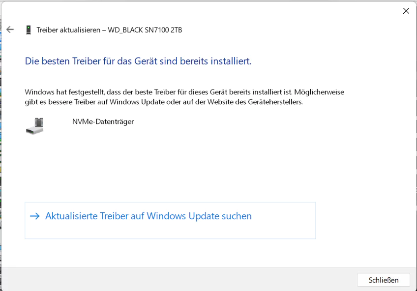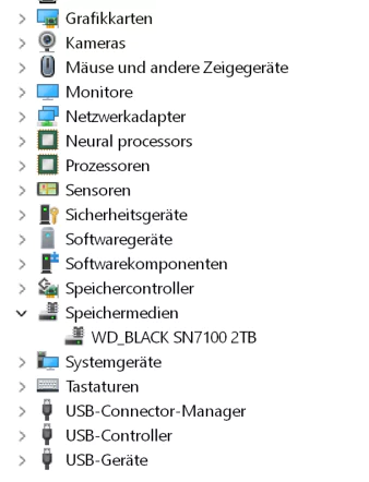 Nach erfolgreicher Umstellung und einem Neustart tauchen NVMe-SSDs im Geräte-Manager nicht mehr unter Laufwerke auf, sondern unter Storage Disks.