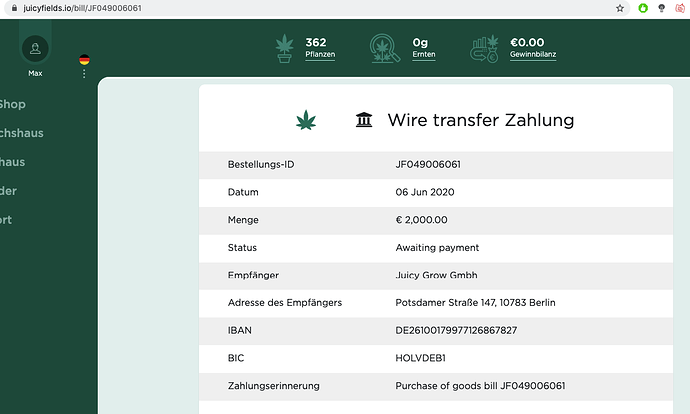 Ich würde kein Geld in Juicyfileds.io investieren! Es gibt aber eine vertrauenswürdige Alternative in der Schweiz, welche ihren Sitz in der Nähe von Bern hat: Cannerald GmbH. cannergrow.com