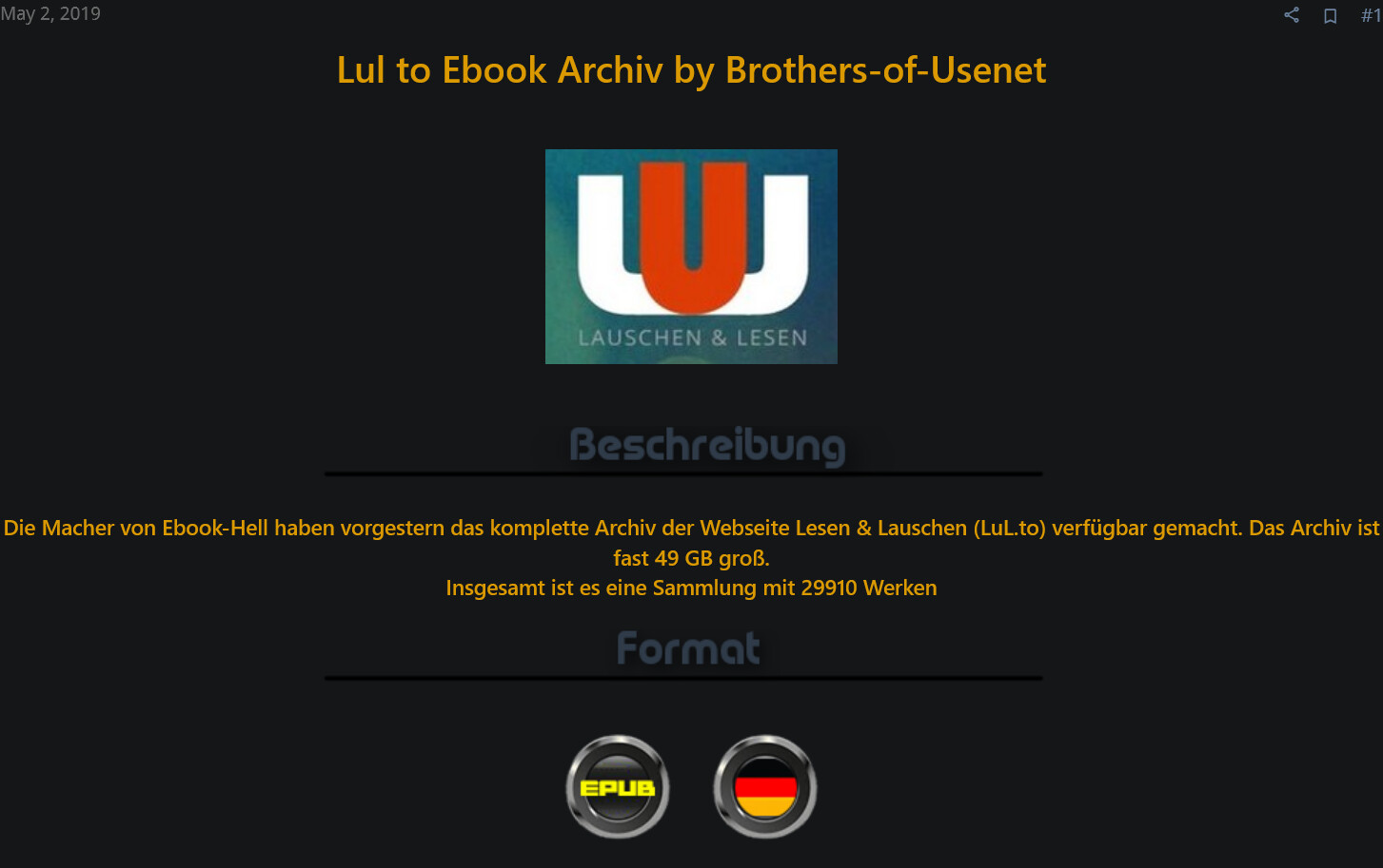 Hättest du nur ganz kurz auf den szenebekannten Seiten wie ibooks.to oder eb hell o.Ä. vorbeigeschaut und nach „LuL“ gesucht, wüsstest du dass es ein völlig alter Hut ist.