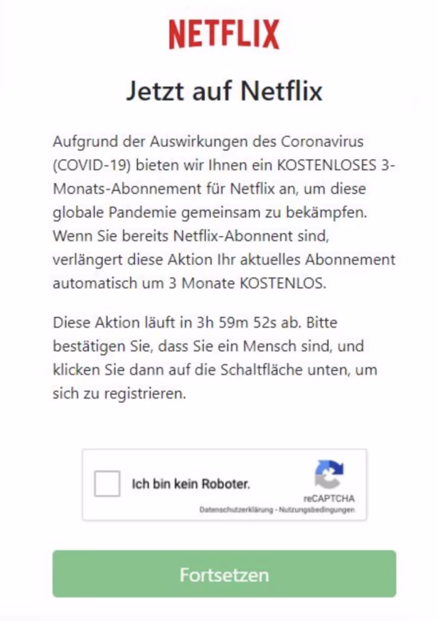 Vorsicht ist vor einer Nachricht geboten, wonach Netflix ein kostenloses 3-monatiges Abo anbietet. Tatsächlich handelt es sich um eine Falle.