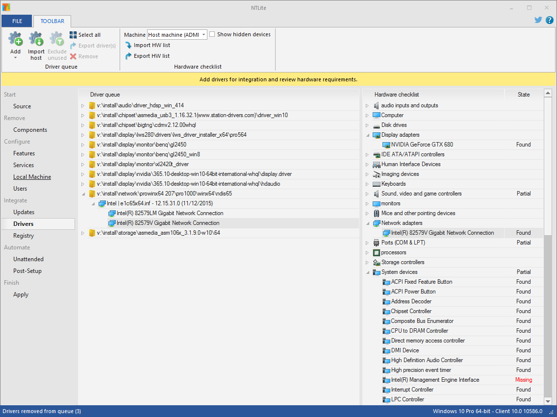 NTLite kann die Hardwareliste des Host-Rechners erfassen und in allen seinen Funktionen verwenden.