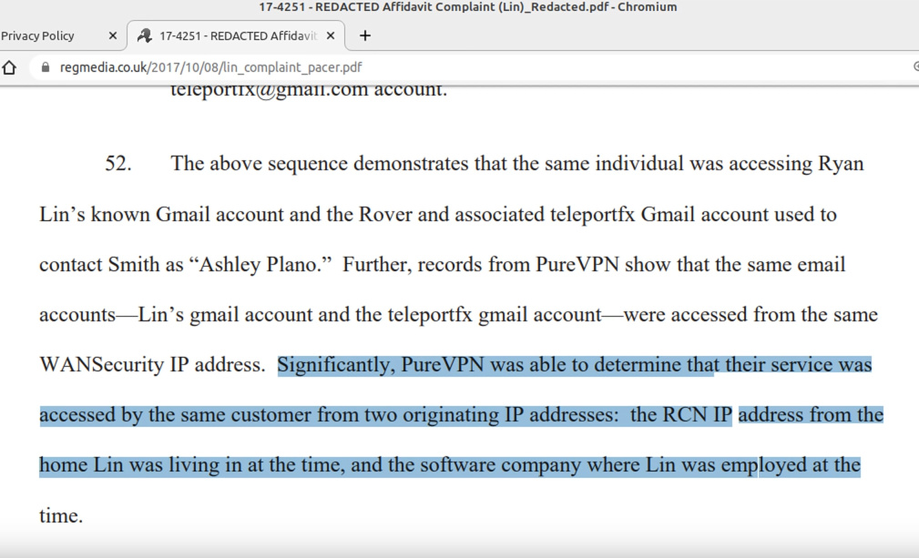IP-Adress-Protokolle sind der Ort, an dem viele vermeintlich „no logs“-Anbieter in Schwierigkeiten geraten. Eine IP-Adresse könnte leicht einer Person oder zumindest einem einzelnen Wifi-Router zugeordnet werden und sollte wirklich als PII betrachtet werden. Eine IP-Adresse, die mit einem Zeitstempel verbunden ist, könnte möglicherweise die tatsächliche Aktivität mit einer Person in Verbindung bringen. In der Tat war dies das Szenario in einigen der Fälle, die wir beim Durchgehen unserer VPN-Liste erwähnen werden.