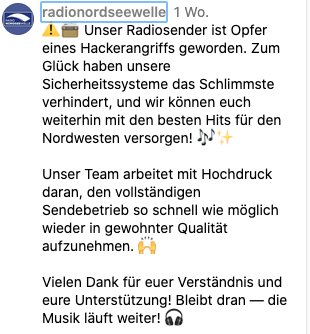 Kommentare zu folgendem Beitrag: Radio Nordseewelle: Cyberangriff legt Infrastruktur von Lokalsender lahm