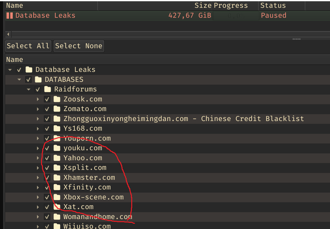 EDIT2: Die in rot eingekreisten Datenbanken wurden alle vor mehr als einem Jahr geleaked. Keine davon ist also neu.