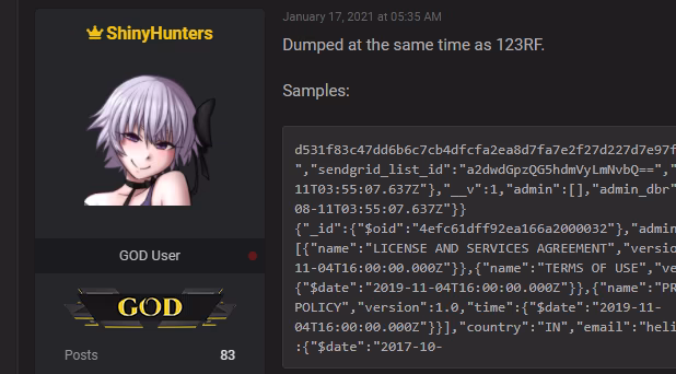 ShinyHunters ist im Übrigen nicht der gönnerhafte Robin Hood, der seine Leaks für lau anderen zur Verfügung stellt ! ![]()