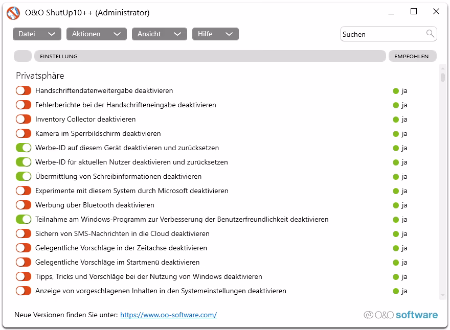 Kommentare zu folgendem Beitrag: ShutUp10: Anti-Spionage und Datenschutz-Tool für Windows 10 und 11