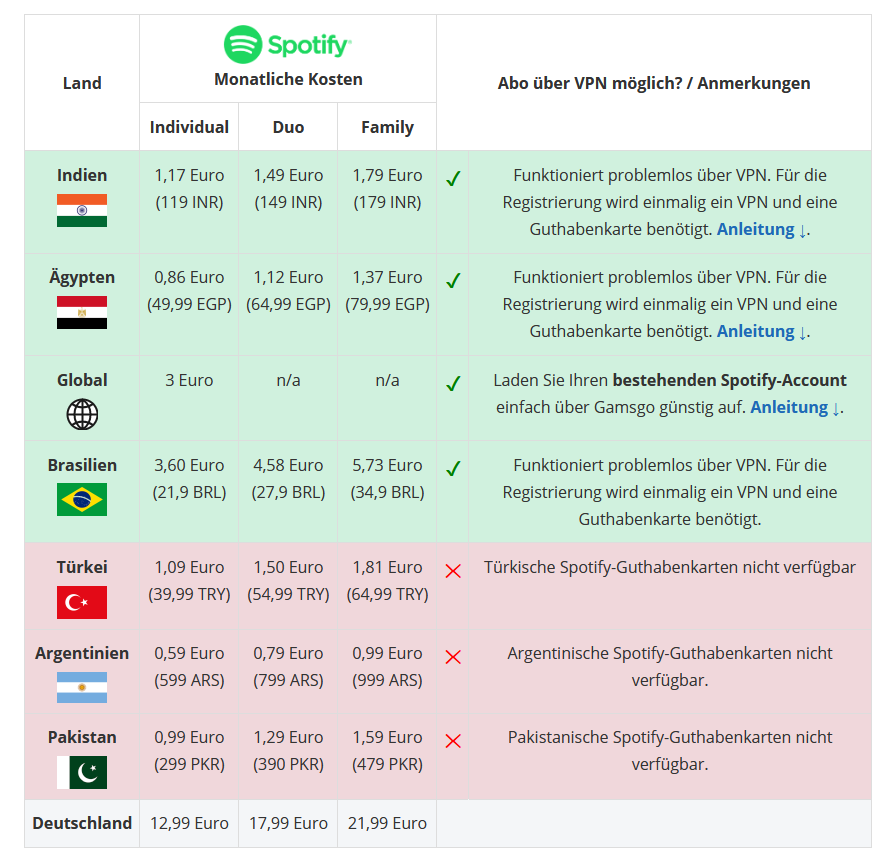 So ein gezuchtel wäre mir dann doch zu aufwendig.2G2,Spotify Premium kostet ca. für 6 Monate=10€ und für 12Monate 17€ Premium Account hat die Ländereinstellung für Deutschland!Läuft,und funktioniert Sahne…